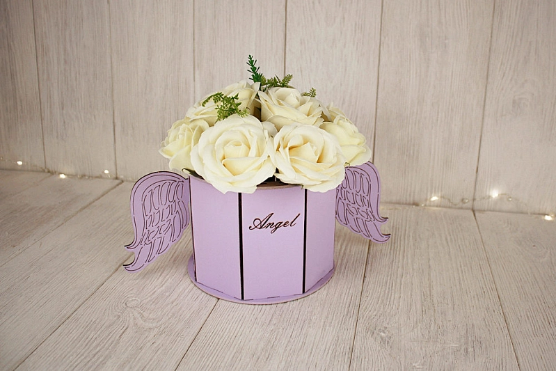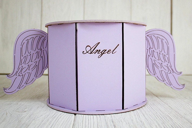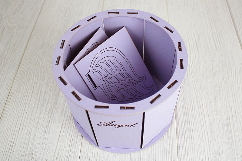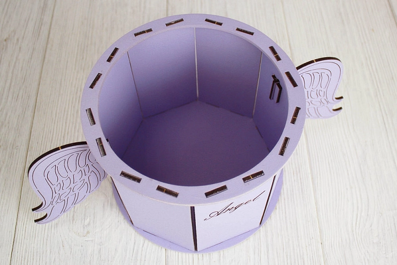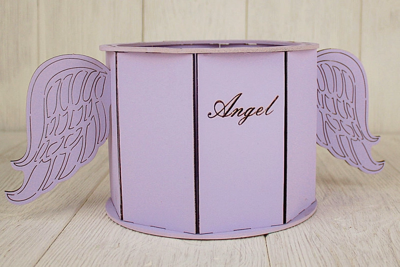 ПУ686-02-4040 Подарочная упаковка "Ангел" круглая (17*32*13) МДФ 3мм, окрашен., оформл., Сиреневый пастель, 1 шт.