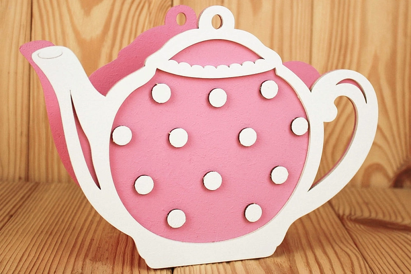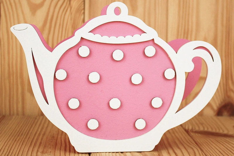 ПУ708-02-0503 Подарочная упаковка "Чайник" с горошком (24,5*8,5*17) МДФ 3мм, окрашен., оформл., Розовый-белый, 1 шт.