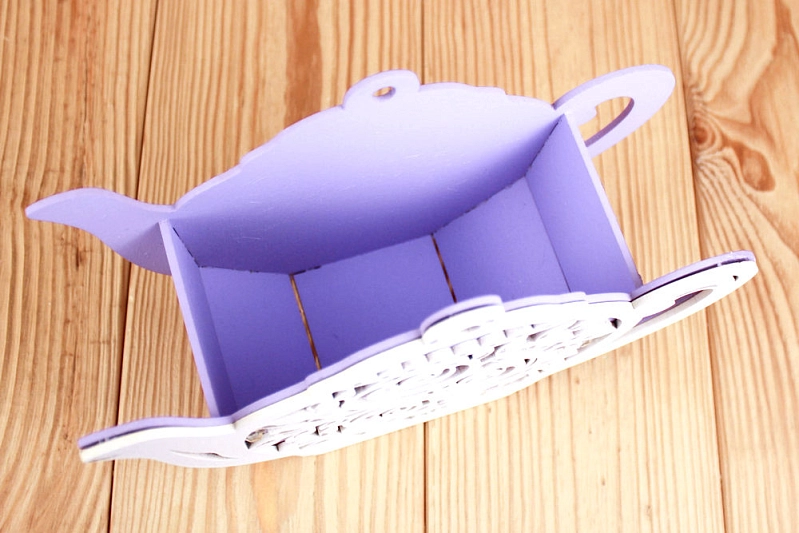 Изготовленная из качественного МДФ толщиной 3 мм, эта упаковка не только красива, но и прочна. 🎨 Она окрашена в нежные сиренево-белые тона и украшена ажурным узором из роз, что придает ей особый шарм и романтичность.