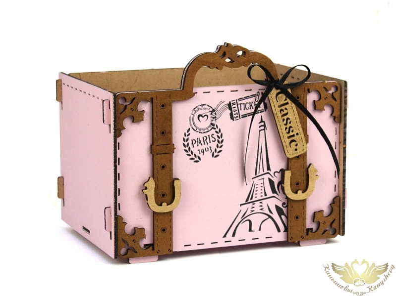 ПУ879-02-4700 Подарочная упаковка "Чемодан. Classic" (18,5*13*15) МДФ, окрашен., оформл., Розовый пастель, 1 шт.