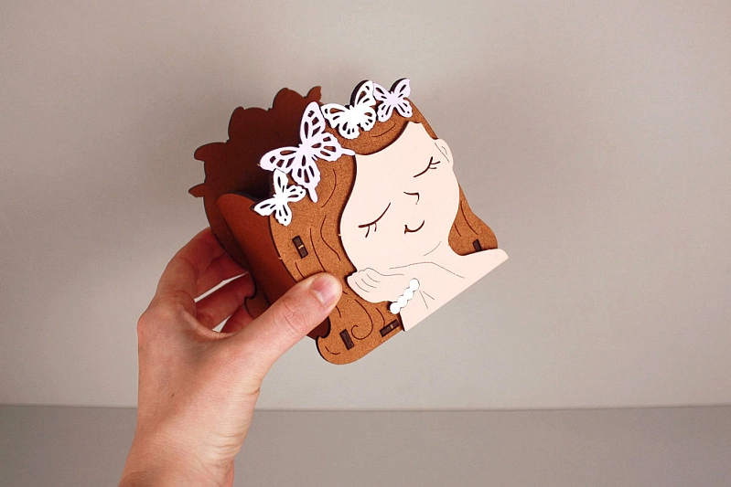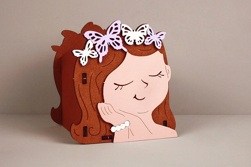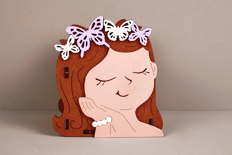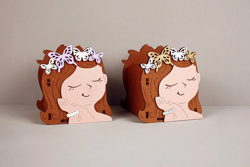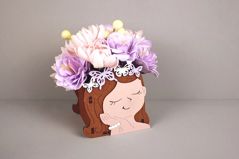 ПУ781-02-0340 Подарочная упаковка "Девочка Весна" (11*10*12) МДФ, окрашен. морилкой, оформл., Белый - сиреневый пастель, 1 шт.