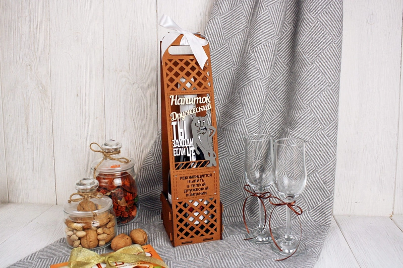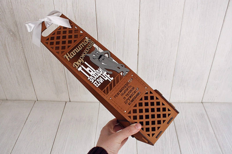 Ищете стильный способ преподнести бутылку любимого напитка? 🎁 Эта подарочная упаковка из МДФ толщиной 3 мм станет прекрасным дополнением к вашему подарку и подчеркнет ваше внимание к деталям.