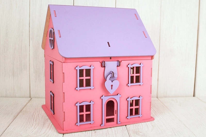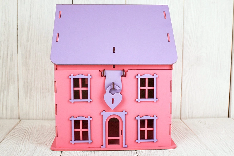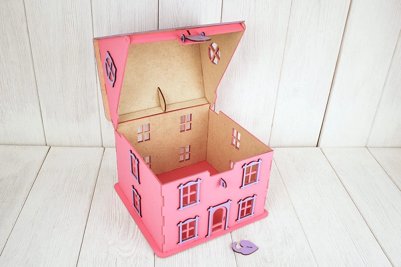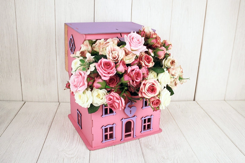 ПУ695-02-0509 Подарочная упаковка "Дом" (24,5*24*28,5) МДФ 3мм, окрашен., оформл., Розовый-сиреневый, 1 шт.