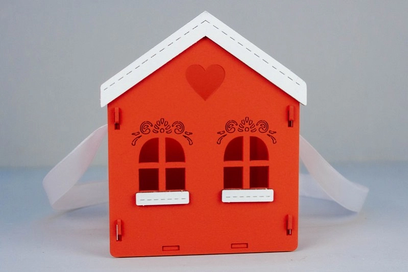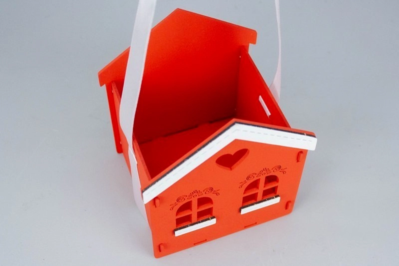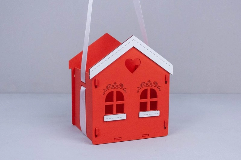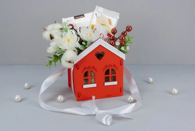 ПУ827-02-0603 Подарочная упаковка "Домик" (13*12*15,5) МДФ, окрашен., оформл., Красный-белый, 1 шт.
