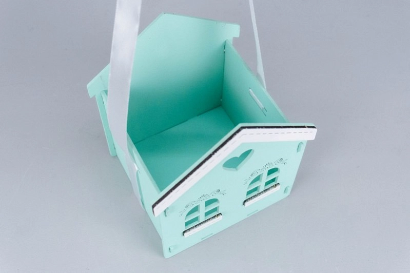 ПУ827-02-4103 Подарочная упаковка "Домик" (13*12*15,5) МДФ, окрашен., оформл., Тиффани пастель-белый, 1 шт.