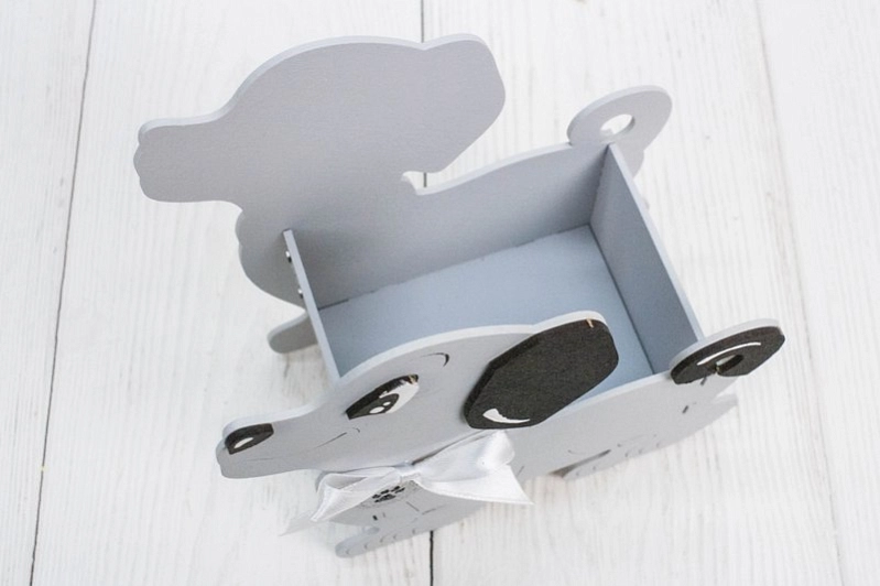ПУ834-02-4750 Подарочная упаковка "Дружок" (15*8*17,5) МДФ, окраш., оформл., Серый пастель-черный, 1 шт.