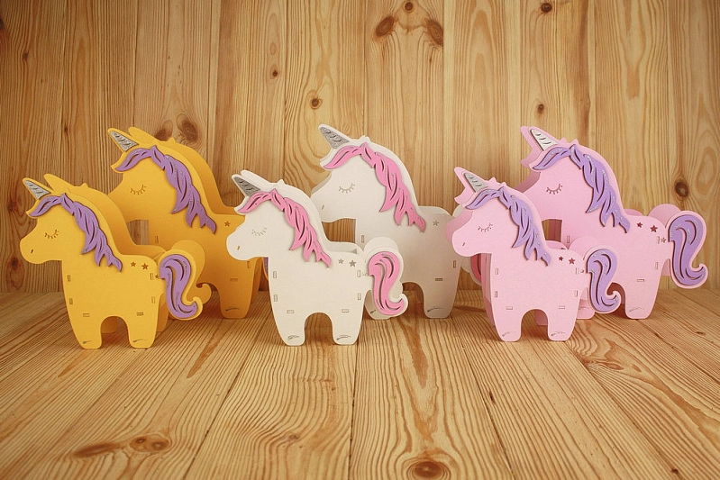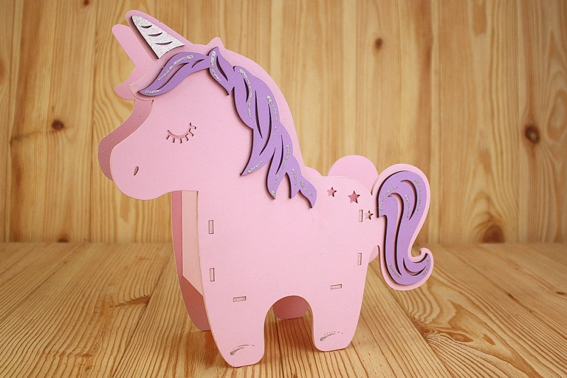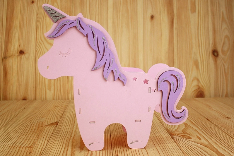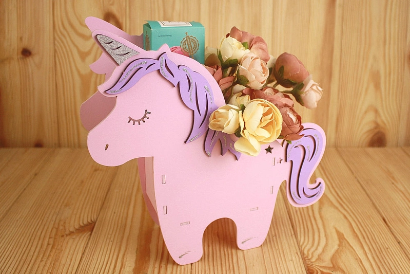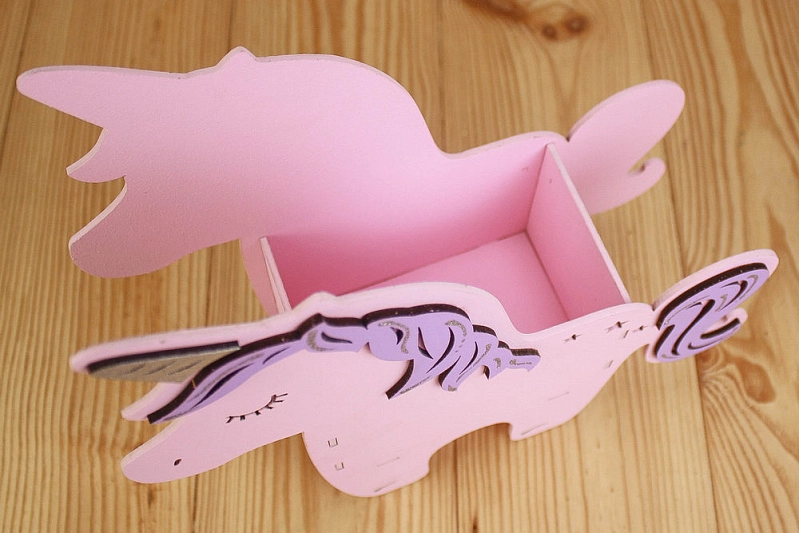 ПУ542-02-0509 Подарочная упаковка "Единорог" большой (27,2*8,5*26,5) МДФ 3мм, окрашен., оформл., Розовый-сиреневый, 1 шт.