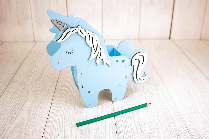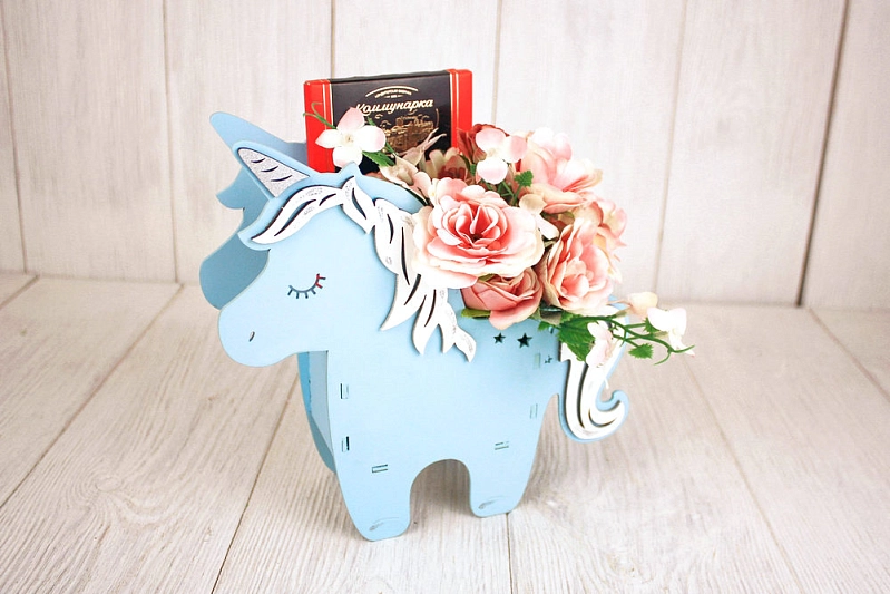 ПУ541-02-4603 Подарочная упаковка "Единорог" малый (21,5*7*21) МДФ 3мм, окрашен., оформл., Голубой пастель-белый, 1 шт.