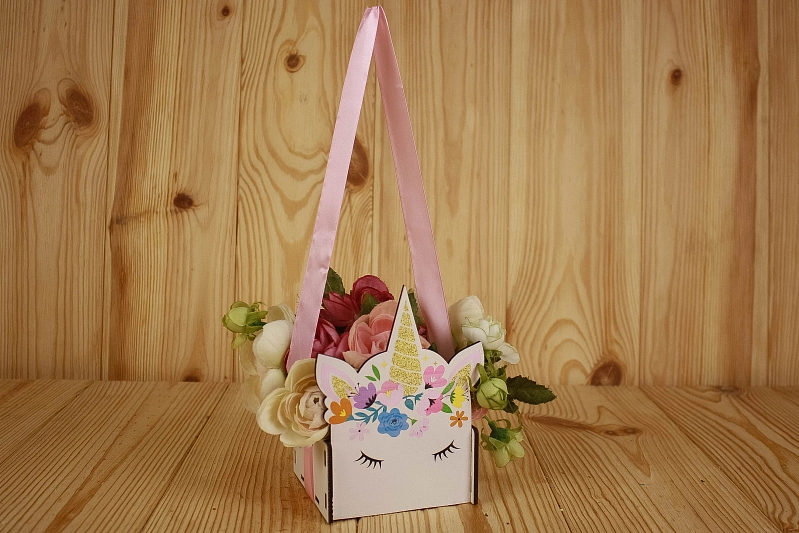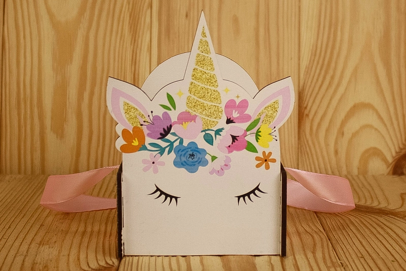 ПУ540-02-0300 Подарочная упаковка "Единорог" МИНИ (11*9,5*14,5) МДФ 3мм, УФ печать, окраш., оформл., 1 шт.