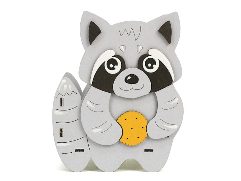 - Дизайн: Очаровательный енотик с милой мордочкой и ярким акцентом в виде печенья.