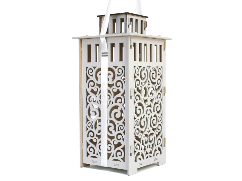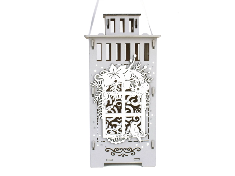 ПУ873-02-4703 Подарочная упаковка "Фонарь" резной (12*12*25) МДФ, окрашен., оформл., Серый пастель-белый, 1 шт.