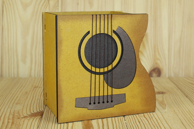 ПУ549-00-6-3648 Подарочная упаковка "Гитара" (16,5*10,3*16) МДФ 3мм, окрашен. морилкой, оформл., Лимон-Эбеновое дерево, 1 шт.