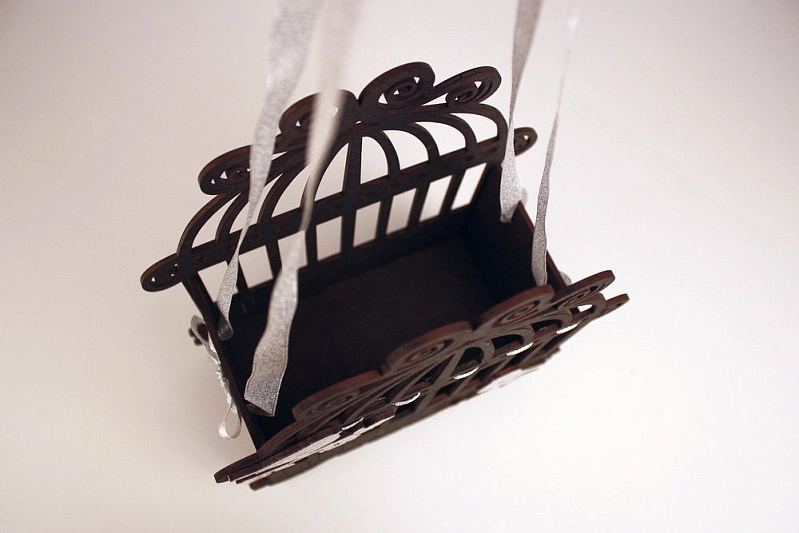 ПУ416-02-5002 Подарочная упаковка "Клетка" с птицами №2 (19,5*9,2*24) МДФ 3мм, окрашен., оформл., Черный-серебро, 1 шт.