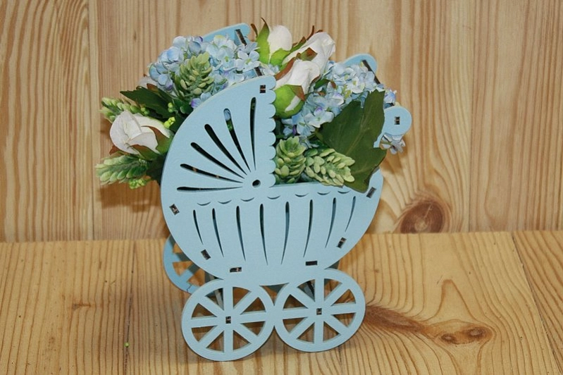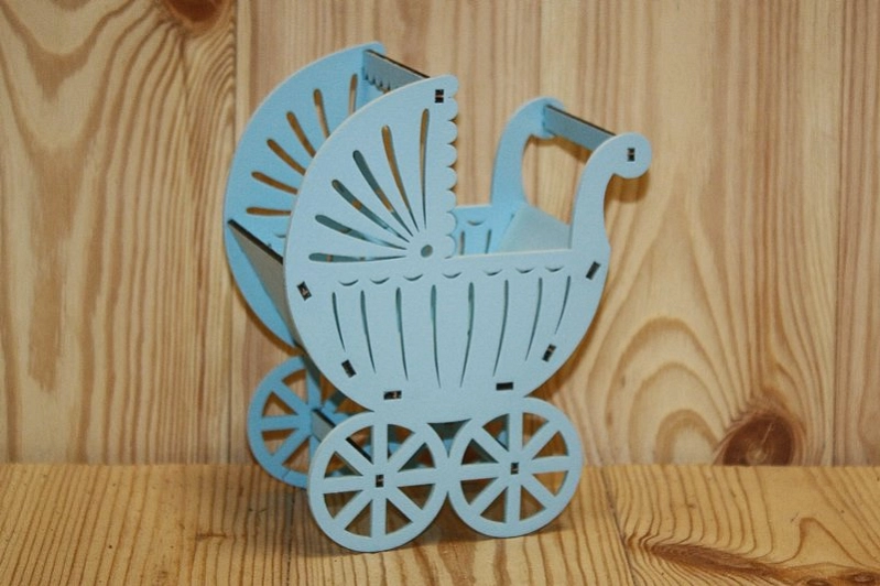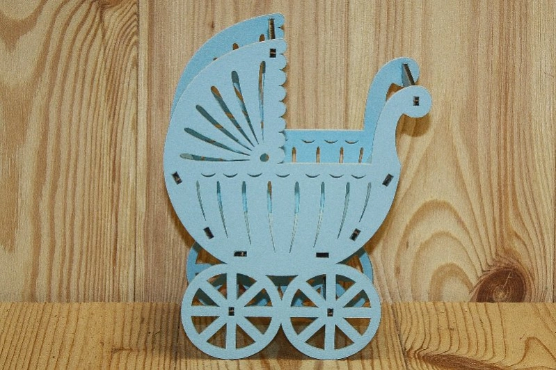 ПУ517-02-4646 Подарочная упаковка "Коляска" малая (14,5*8,5*18,5) МДФ 3мм, окрашен., Голубой пастель, 1 шт.