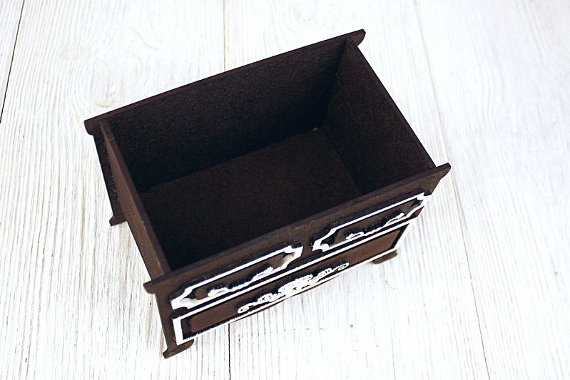 ПУ734-02-5003 Подарочная упаковка "Комод "Винтаж" (14,5*9*10,5) МДФ, окрашен. морилкой, оформл., Черный-белый, 1 шт.