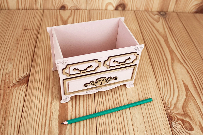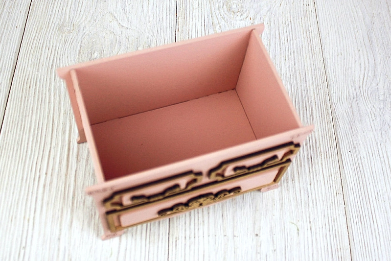 Изготовленная из качественного МДФ, эта упаковка не только красива, но и прочна. 💖 Ее нежный пудровый цвет с золотыми акцентами придает ей элегантность и винтажный шарм.