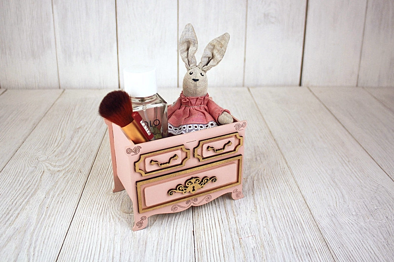 ПУ734-02-4501 Подарочная упаковка "Комод "Винтаж" (14,5*9*10,5) МДФ, окрашен., оформл., Пудровый-золото, 1 шт.