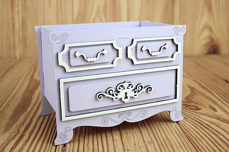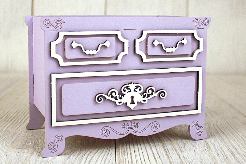 ПУ734-02-4003 Подарочная упаковка "Комод "Винтаж" (14,5*9*10,5) МДФ, окрашен., оформл., Сиреневый пастель-белый, 1 шт.