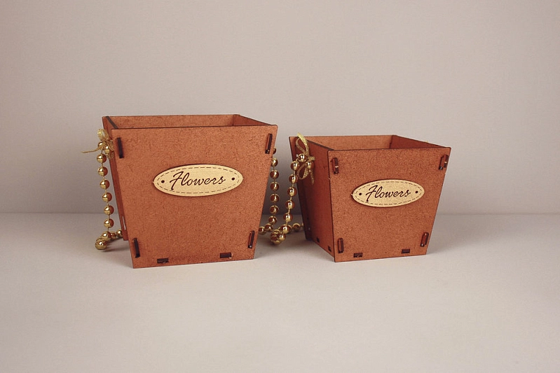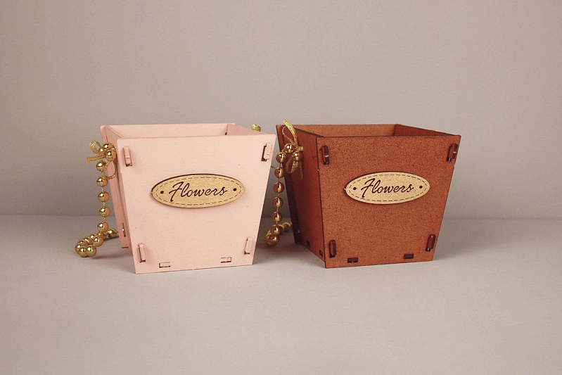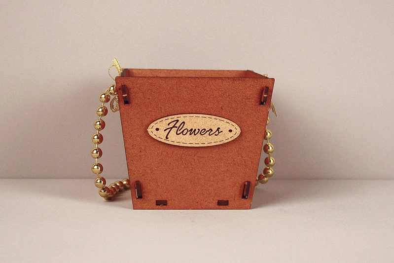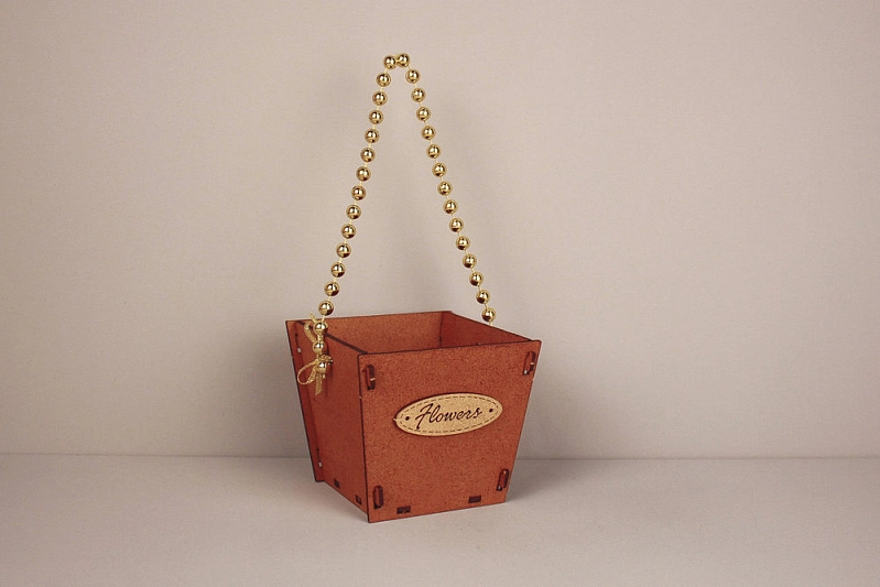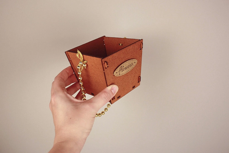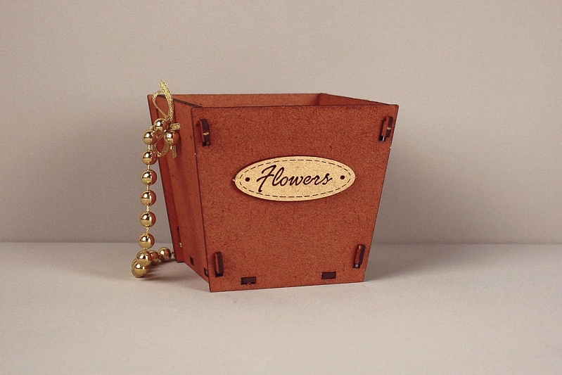 ПУ776-02-3701 Подарочная упаковка-конус "Flowers" малая (10*10,5*9) МДФ 3мм, окрашен., оформл., Дуб-золото, 1 шт.