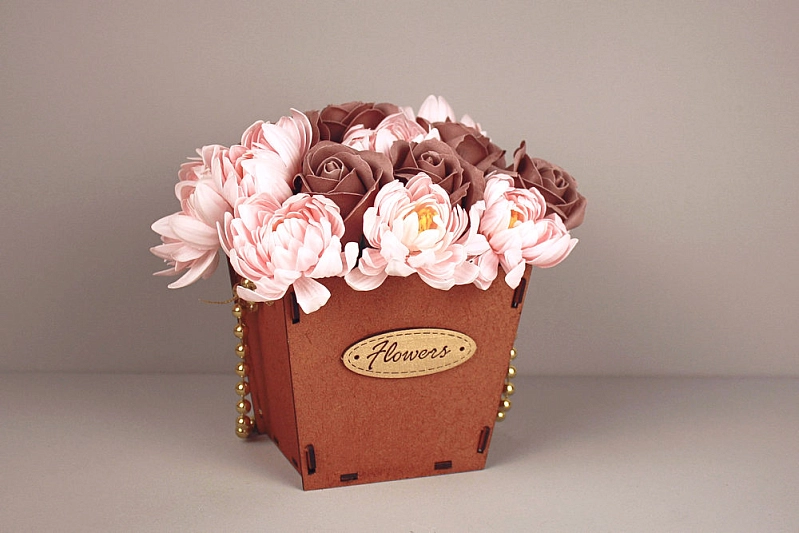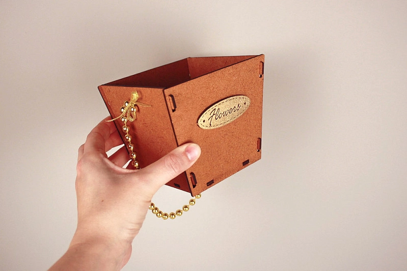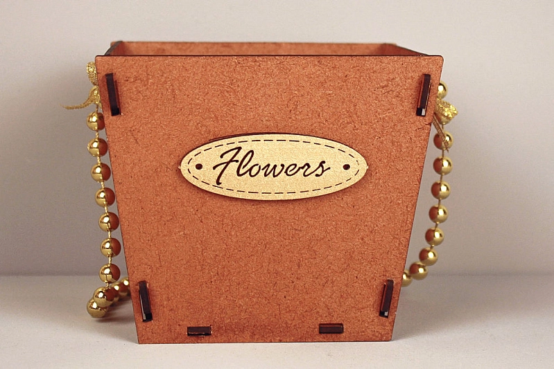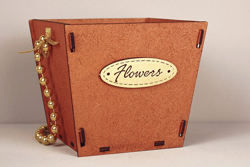 ПУ777-02-3701Подарочная упаковка-конус "Flowers" средняя (12*12*10,5) МДФ 3мм, окрашен., оформл., Дуб-золото, 1 шт.