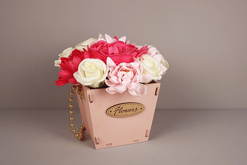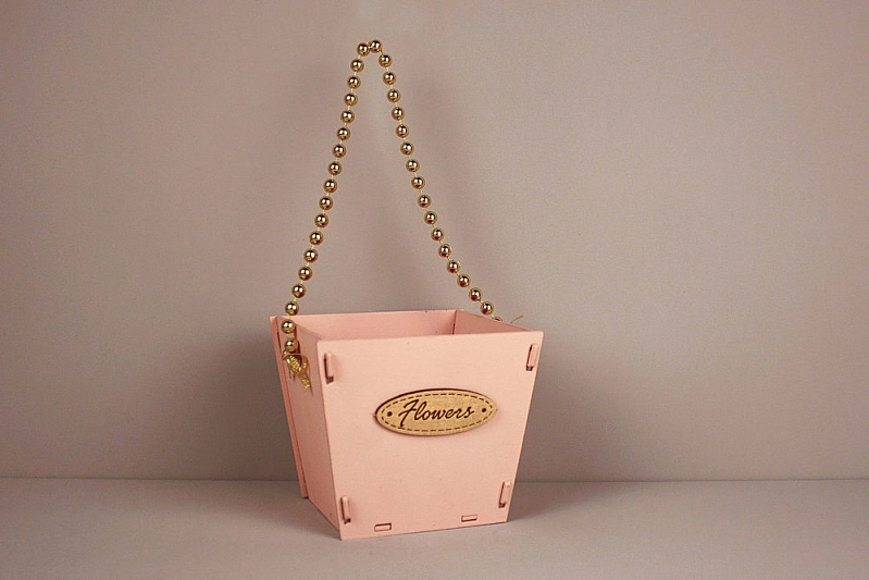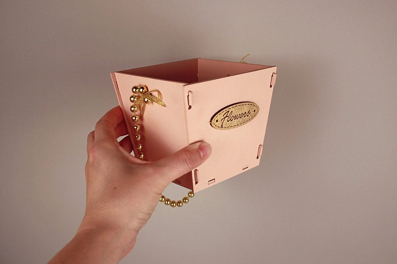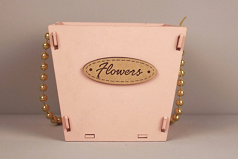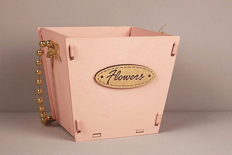 ПУ777-02-4501Подарочная упаковка-конус "Flowers" средняя (12*12*10,5) МДФ 3мм, окрашен., оформл., Пудровый-золото, 1 шт.