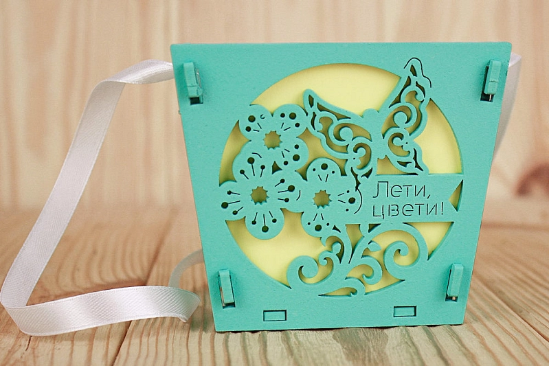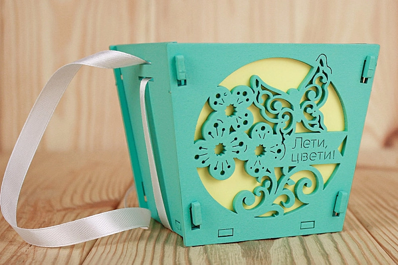 ПУ616-02-2603 Подарочная упаковка-конус "Лети, цвети!" малая (10*10,5*9) МДФ 3мм, окрашен., оформл., Тиффани-белый, 1 шт.