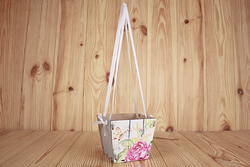 ПУ605-02-4703 Подарочная упаковка-конус с розой и бабочкой, средняя (12*12*10,5) МДФ 3мм, УФ печать, окраш., оформл., Серый пастель-белый, 1 шт.