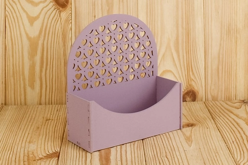 ПУ300-02-4343 Подарочная упаковка-конверт округлый с сердцами (18*6,6*20,5) МДФ 3мм, окрашен., Лавандовый, 1 шт.
