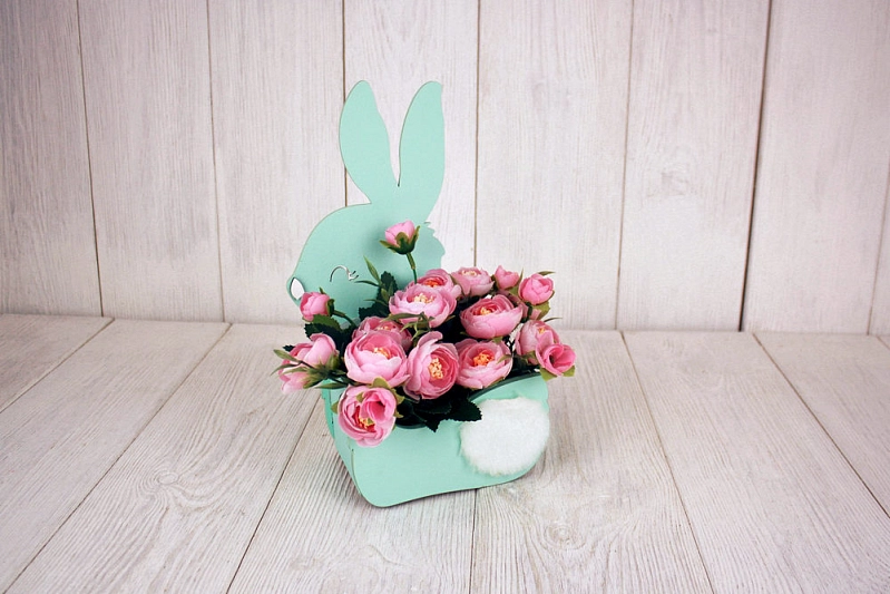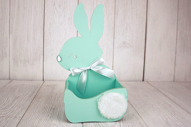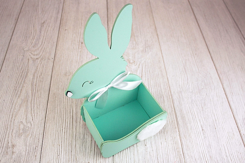 ПУ730-02-4103 Подарочная упаковка-конверт "Зайка" большой (16*9*27,5) МДФ 3мм, окрашен., оформл., Тиффани пастель-белый, 1 шт.