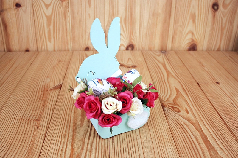 ПУ729-02-4103 Подарочная упаковка-конверт "Зайка" малый (13*7,5*22) МДФ 3мм, окрашен., оформл., Тиффани пастель-белый, 1 шт.