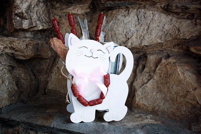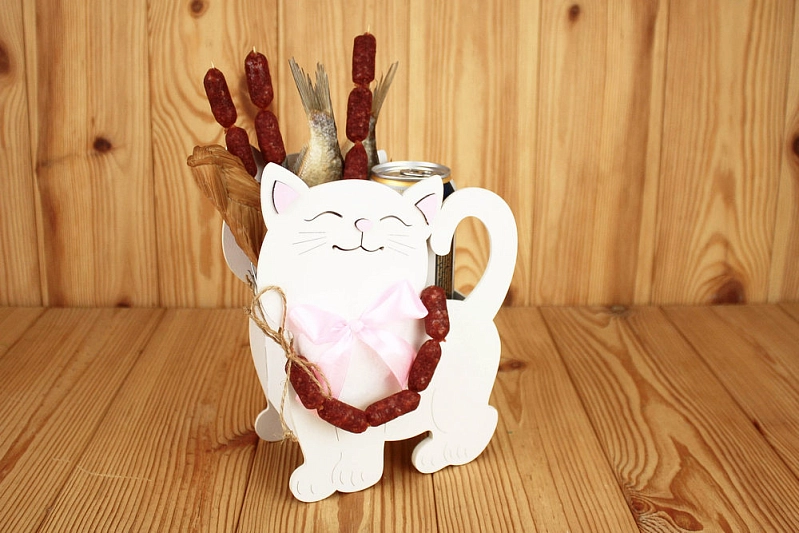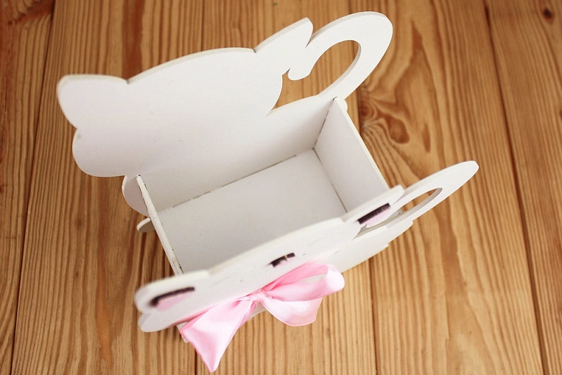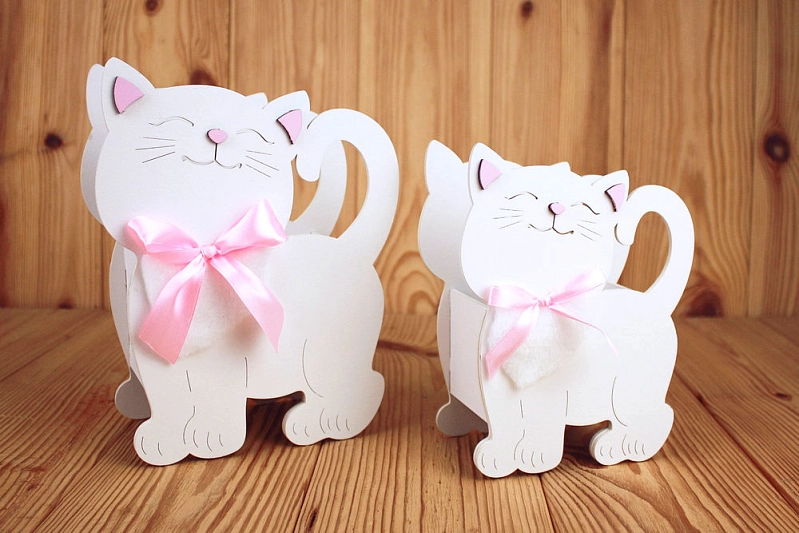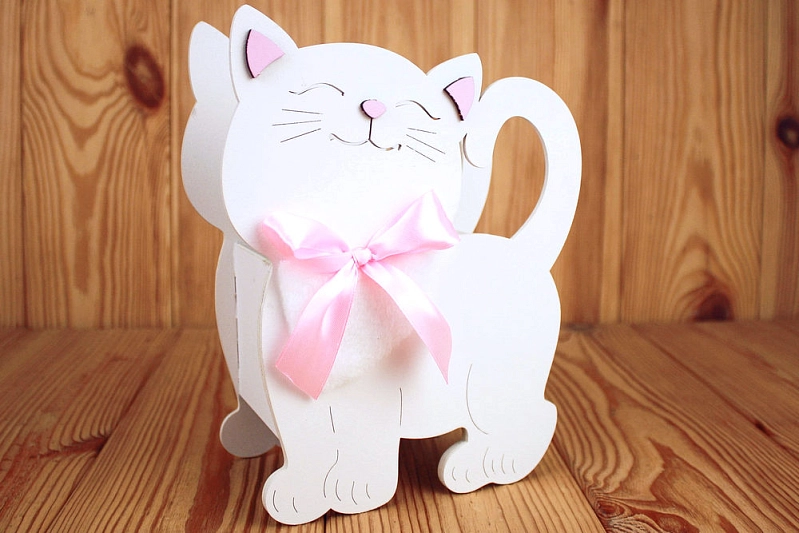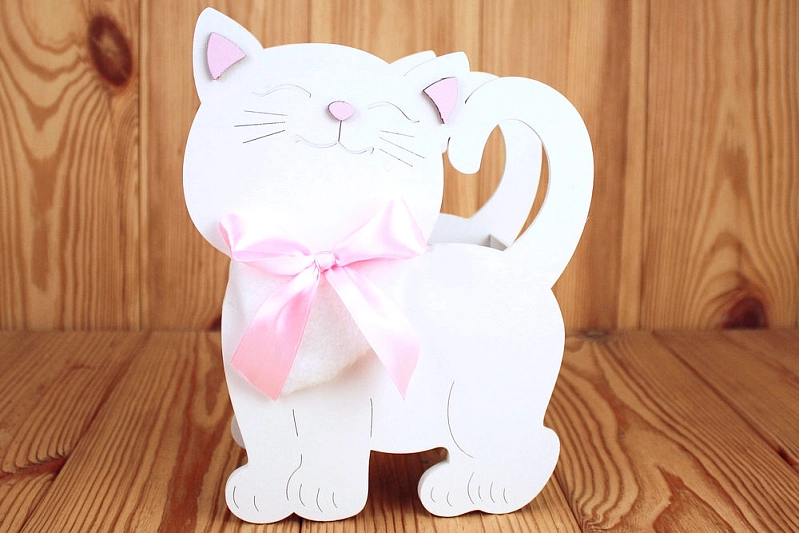 ПУ733-02-0305 Подарочная упаковка "Котик" большой (18*8,5*23) МДФ 3мм, окрашен., оформл., Белый-розовый, 1 шт.