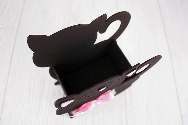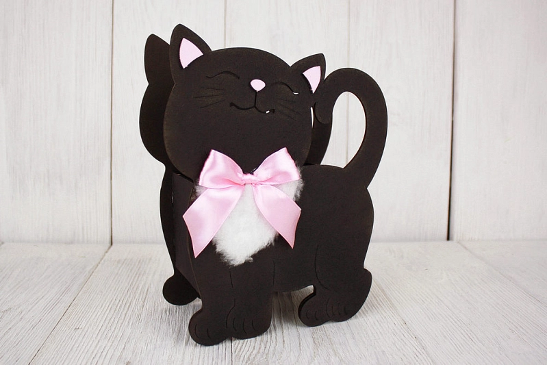 ПУ733-02-5005 Подарочная упаковка "Котик" большой (18*8,5*23) МДФ 3мм, окрашен. морилкой, оформл., Эбен. дерево\колер-розовый, 1 шт.