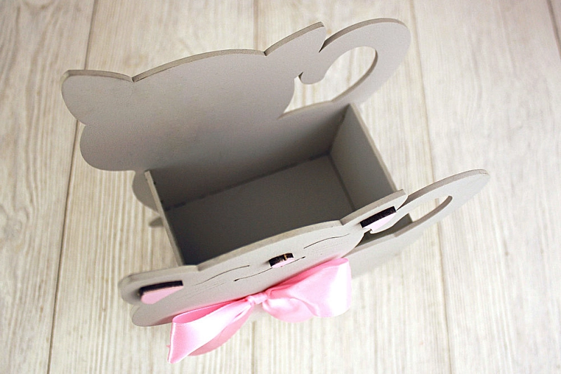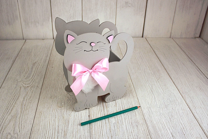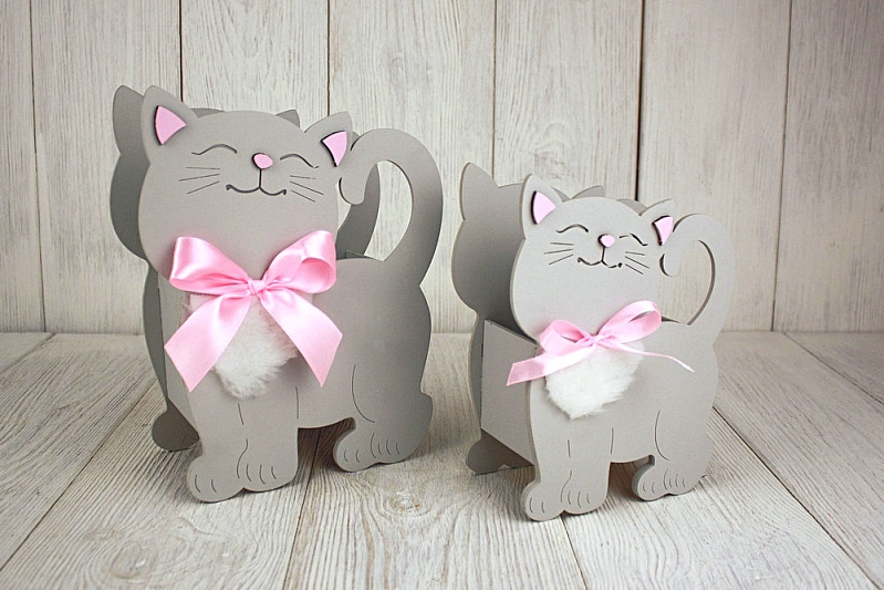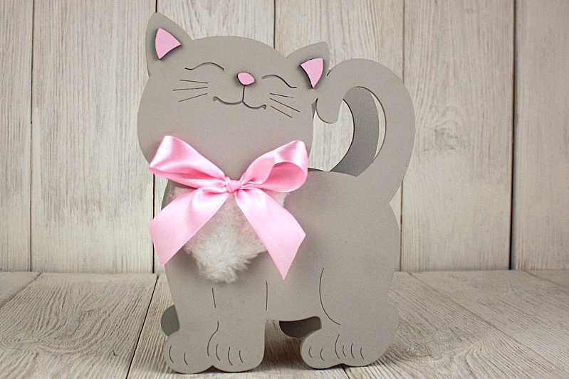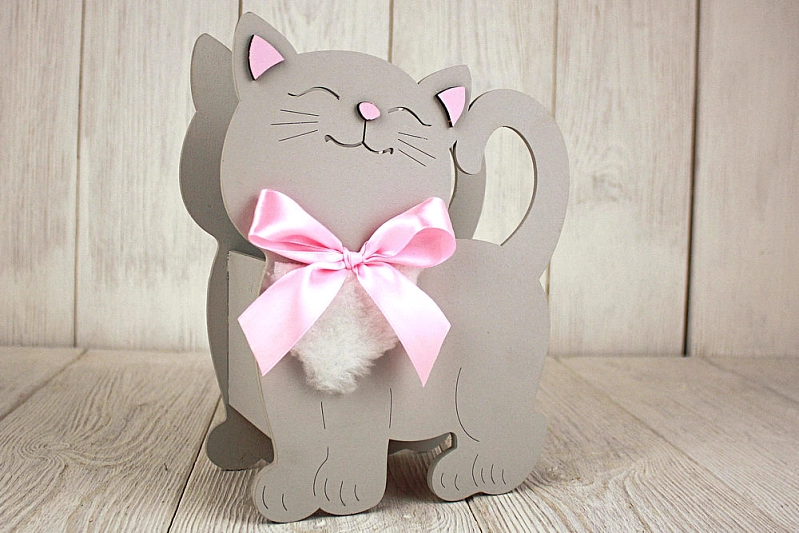 ПУ733-02-4705 Подарочная упаковка "Котик" большой (18*8,5*23) МДФ 3мм, окрашен., оформл., Серый пастель-розовый, 1 шт.