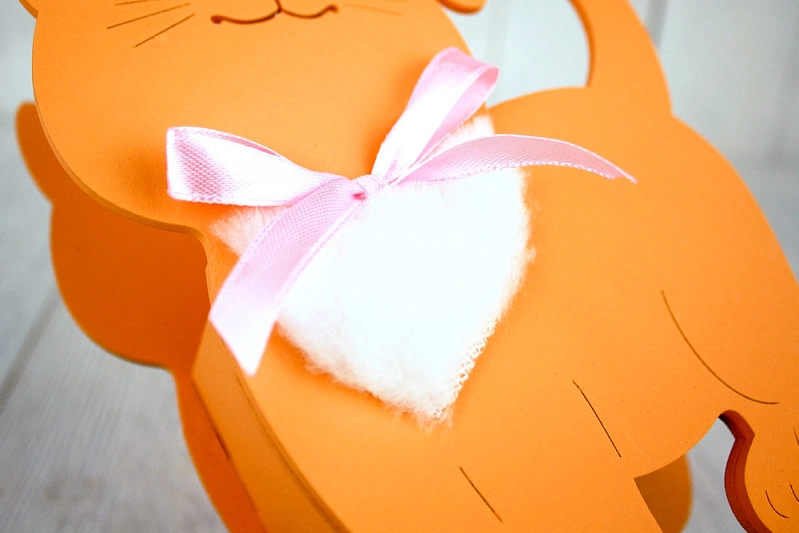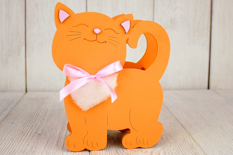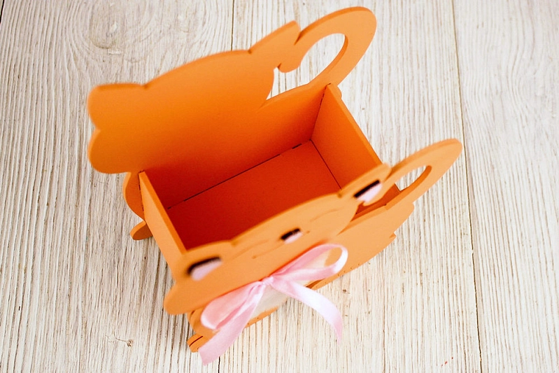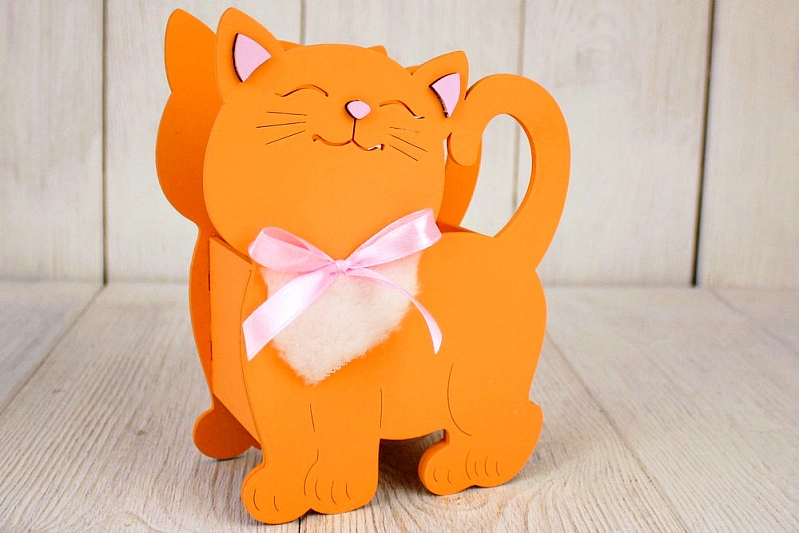ПУ732-02-1505 Подарочная упаковка "Котик" малый (14,5*7*18,5) МДФ 3мм, окрашен., оформл., Оранжевый-розовый, 1 шт.