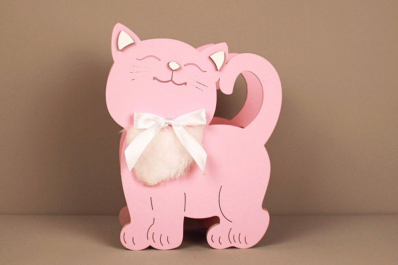 ПУ732-02-3903 Подарочная упаковка "Котик" малый (14,5*7*18,5) МДФ 3мм, окрашен., оформл., Розовый пастель-белый, 1 шт.