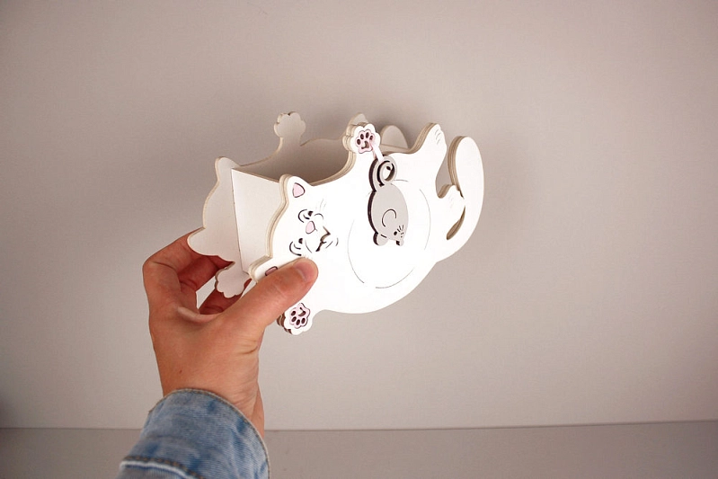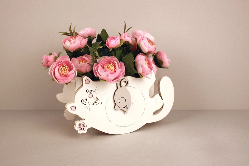 ПУ753-02-0347 Подарочная упаковка "Котик с мышкой"малый (19*7,5*12) МДФ 3мм, окрашен., оформл., Белый-серый, 1 шт.