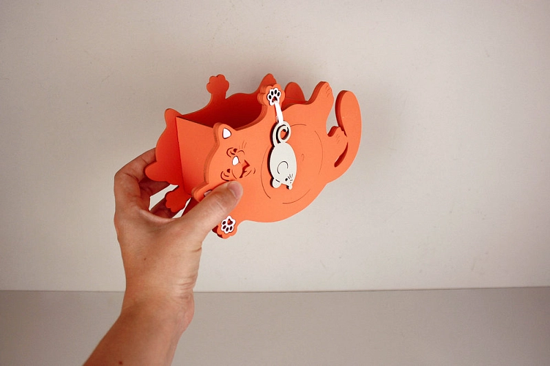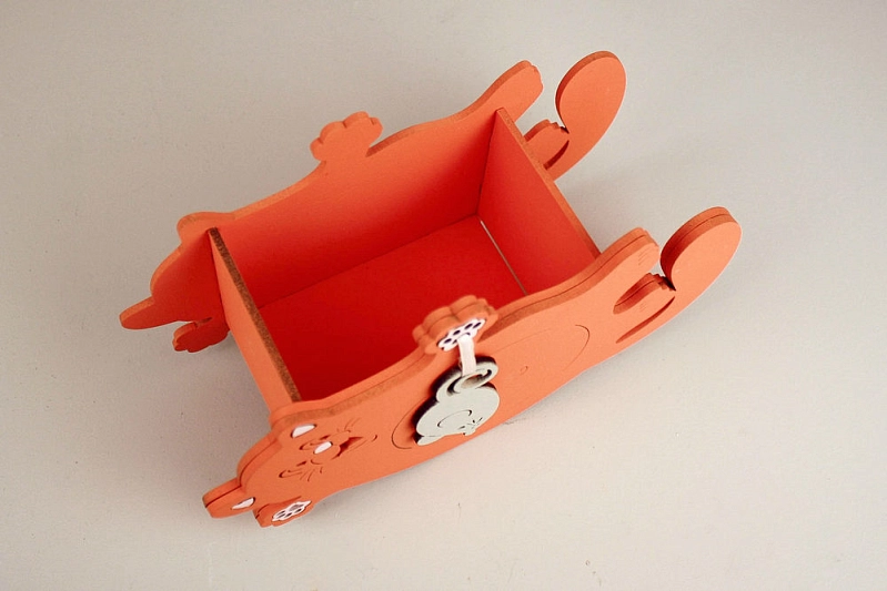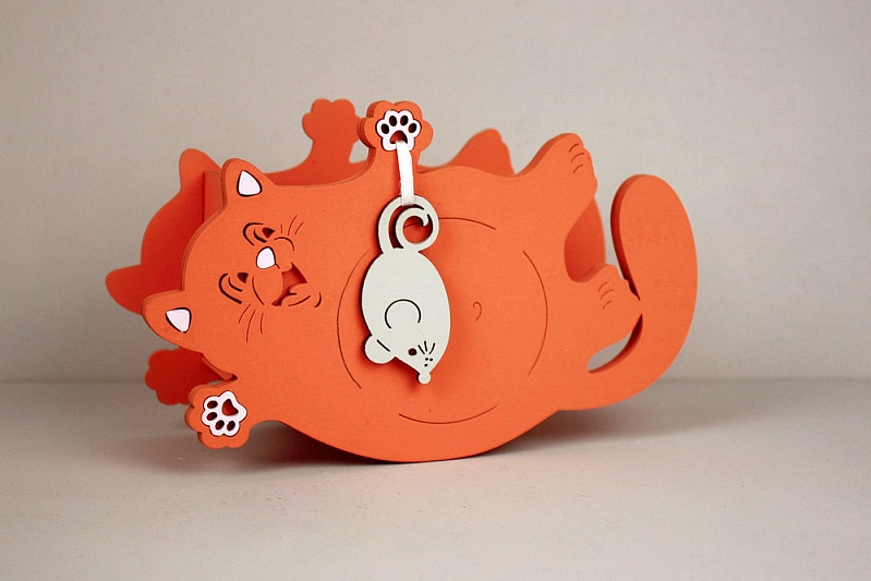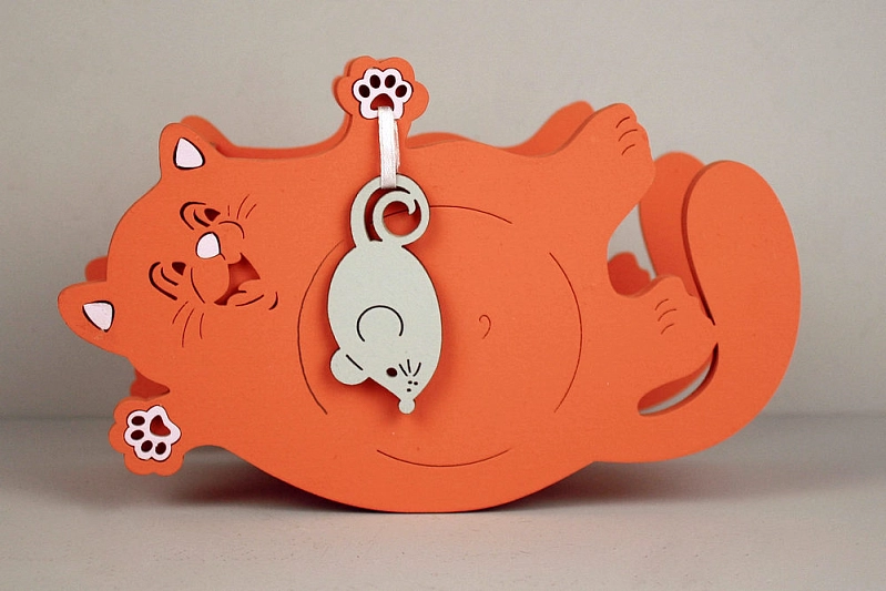 ПУ753-02-1547 Подарочная упаковка "Котик с мышкой" малый (19*7,5*12) МДФ 3мм, окрашен., оформл., Оранжевый-серый пастель, 1 шт.