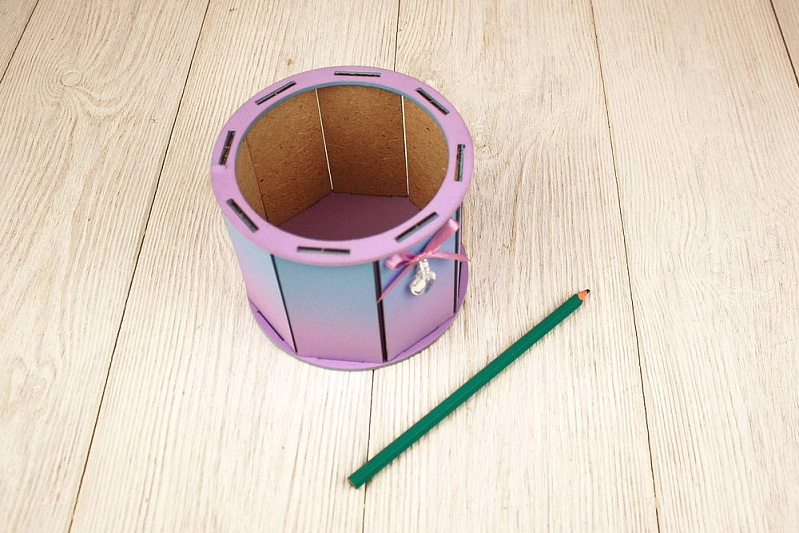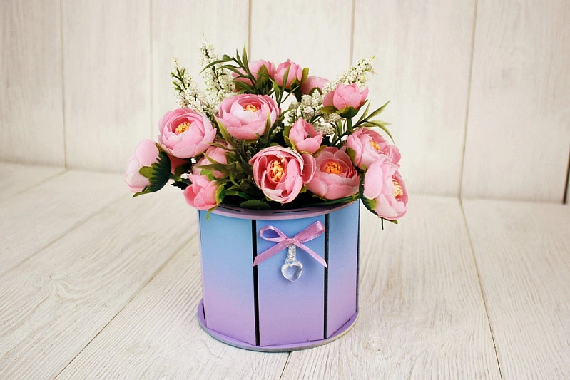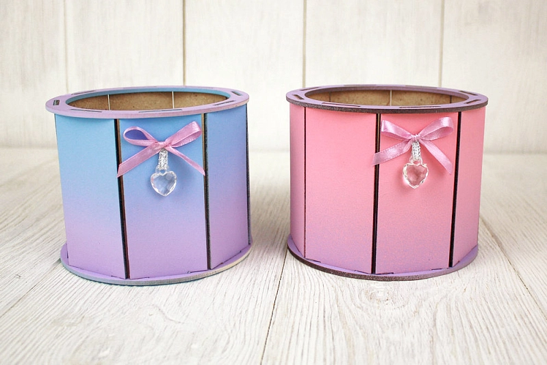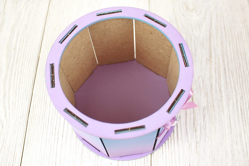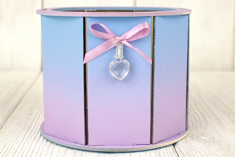 ПУ704-02-0709Гр Подарочная упаковка круглая МИНИ, с градиентом (13*13*10) МДФ 3мм, окрашен., Голубой-сиреневый, 1 шт.