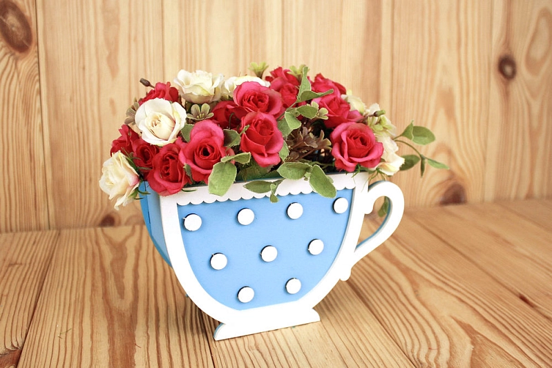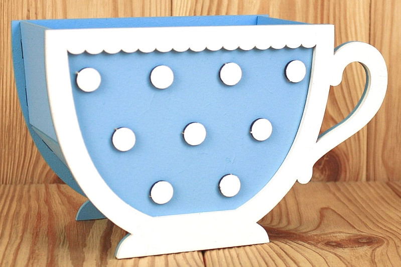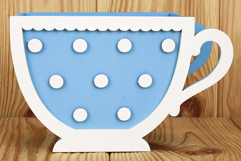 ПУ707-02-0703 Подарочная упаковка "Кружка" с горошком (18*8*11) МДФ 3мм, окрашен., оформл., Голубой-белый, 1 шт.
