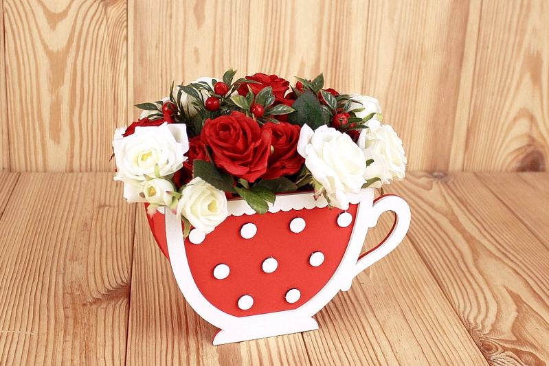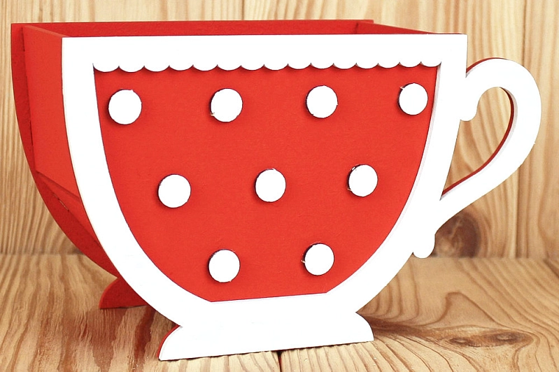 ПУ707-02-0603 Подарочная упаковка "Кружка" с горошком (18*8*11) МДФ 3мм, окрашен., оформл., Красный-белый, 1 шт.