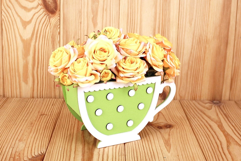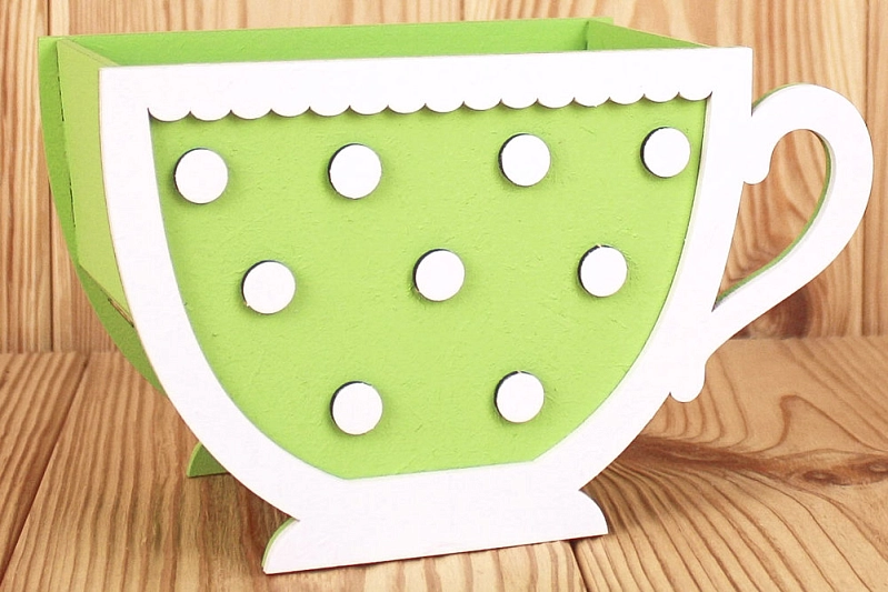 ПУ707-02-1303 Подарочная упаковка "Кружка" с горошком (18*8*11) МДФ 3мм, окрашен., оформл., Салатовый-белый, 1 шт.