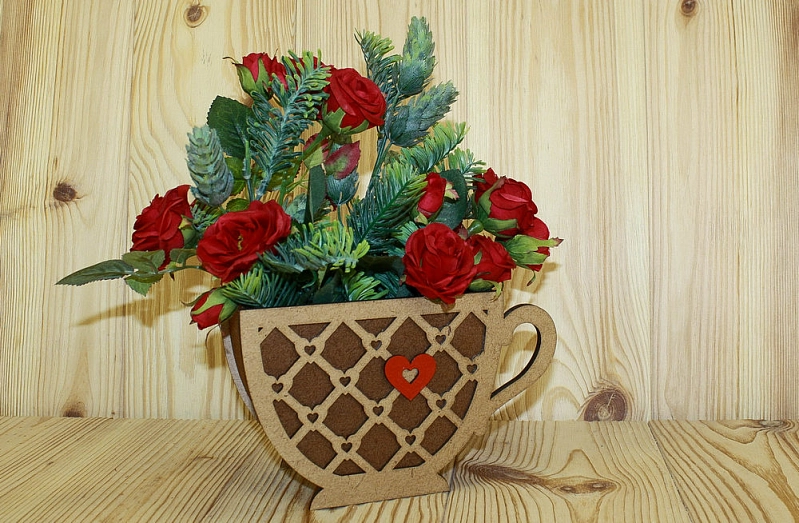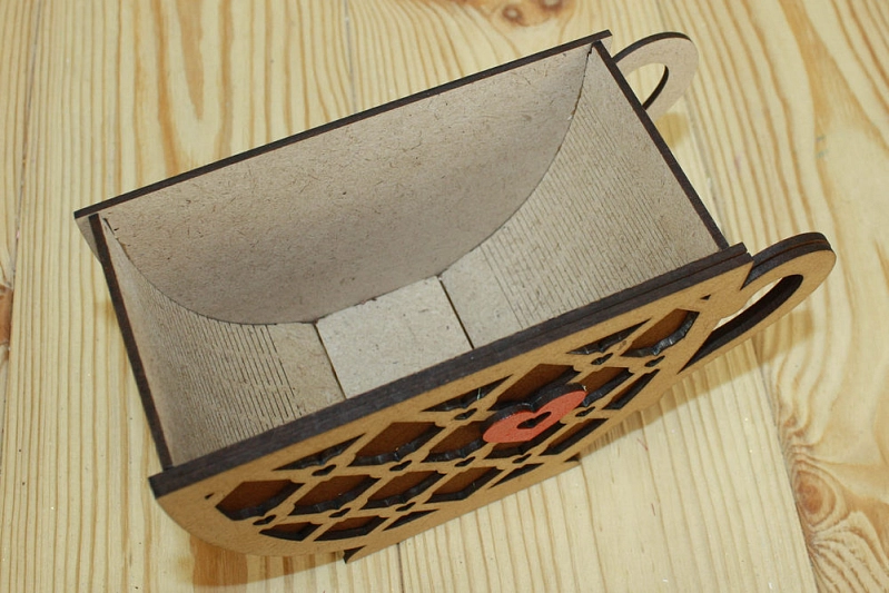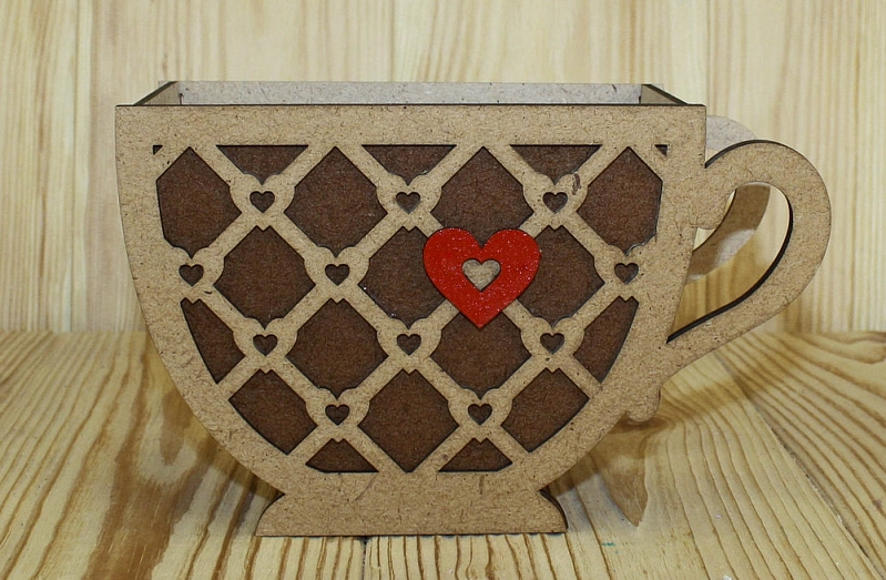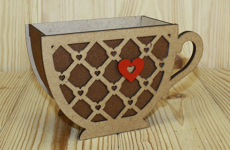 ПУ534-00-3438 Подарочная упаковка "Кружка" с сердечком (18,3*8,1*11) МДФ 3мм, окрашен. морилкой, оформл., Мокко-орех, 1 шт.