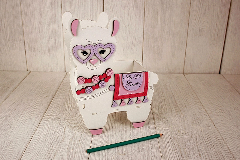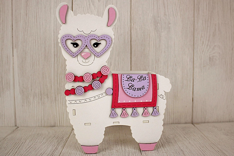 ПУ675-02-0340 Подарочная упаковка "Лама" (19*9,5*26) МДФ 3мм, окрашен., оформл., Белый-сиреневый пастель, 1 шт.