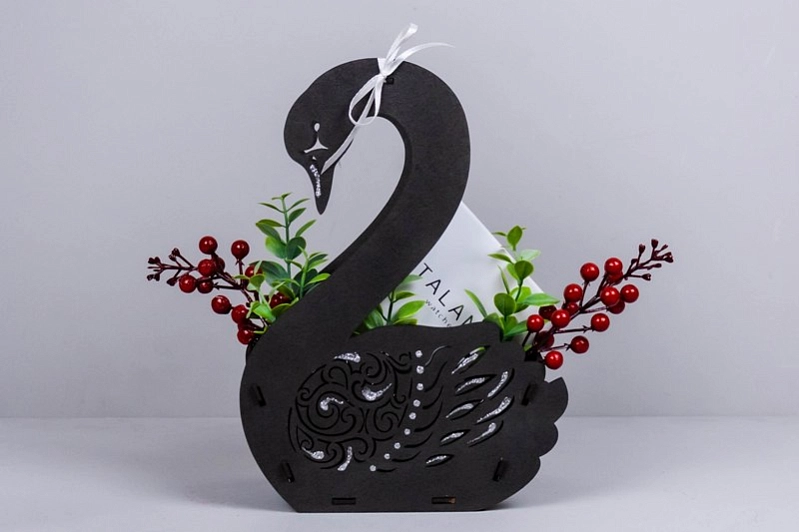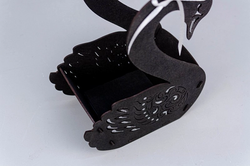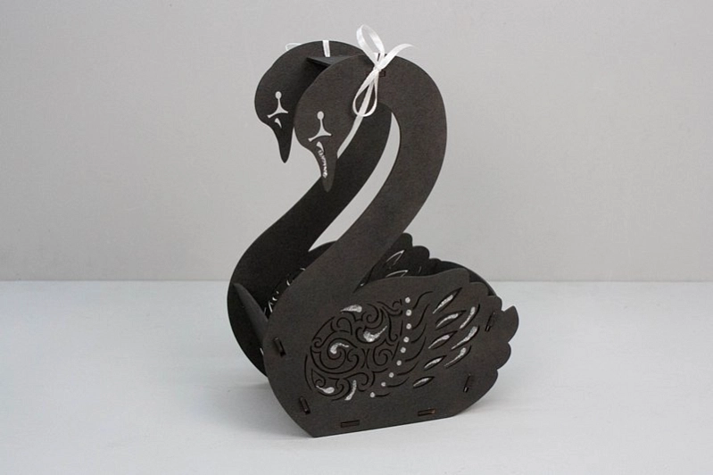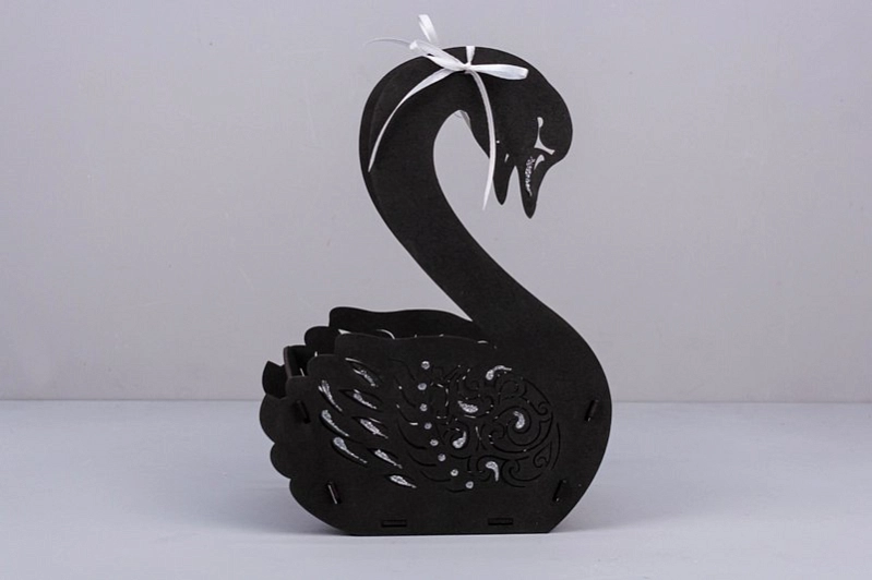 ПУ829-02-5050 Подарочная упаковка "Лебедь" (17,5*11*24,5) МДФ, окрашен., оформл., Черный, 1 шт.