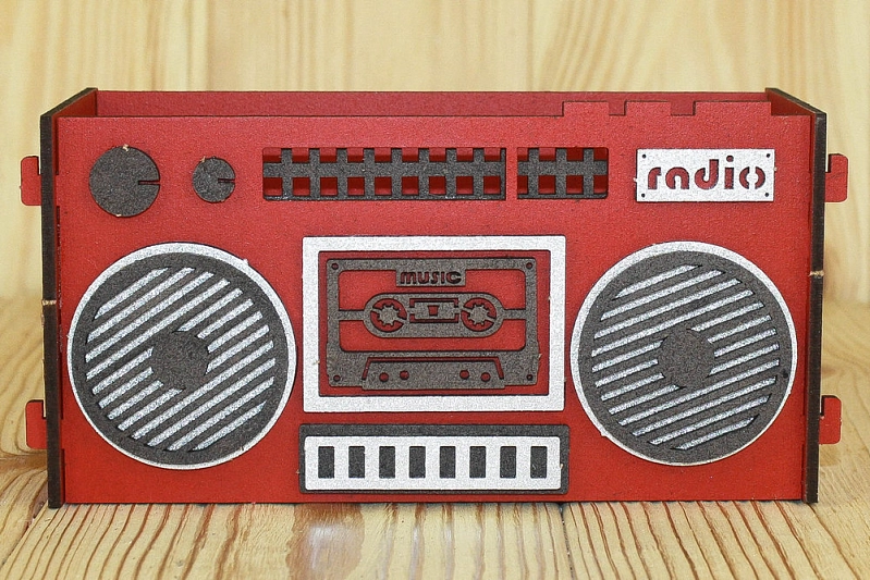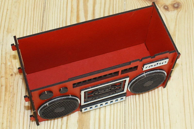ПУ544-02-0648 Подарочная упаковка "Магнитофон" (20*8,5*9,5) МДФ 3мм, окрашен. оформл., Красный-Эбеновое дерево, 1 шт.