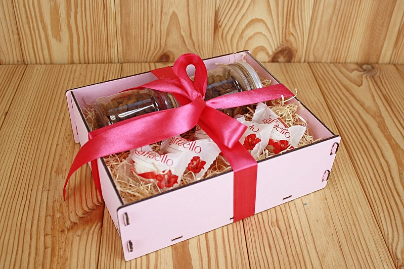 ПУ649-02-3939Нс Подарочная упаковка малая (21*17,5*7) МДФ 3мм, окрашен., Розовый пастель, 1 шт., БЕЗ СБОРКИ