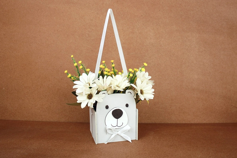 ПУ738-02-4703 Подарочная упаковка "Мишка" (10*9,5*12) МДФ, окрашен., оформл., Серый пастель-белый, 1 шт.