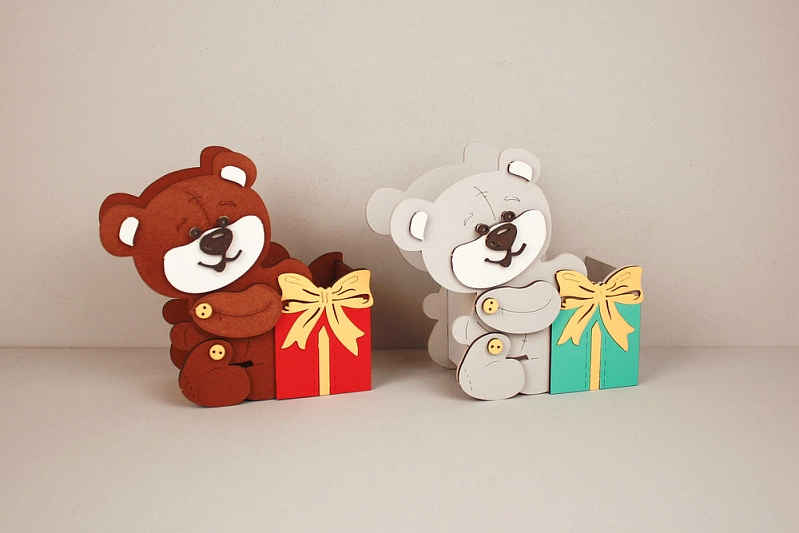 Очаровательная подарочная упаковка "Мишка с подарком"