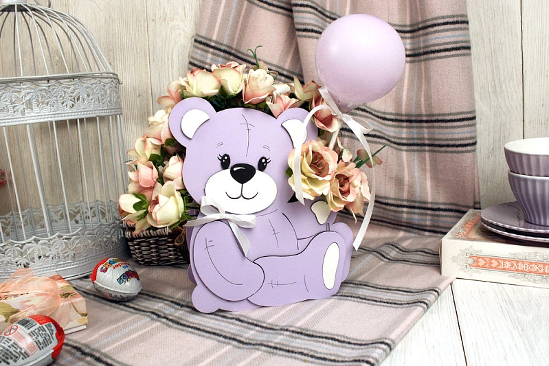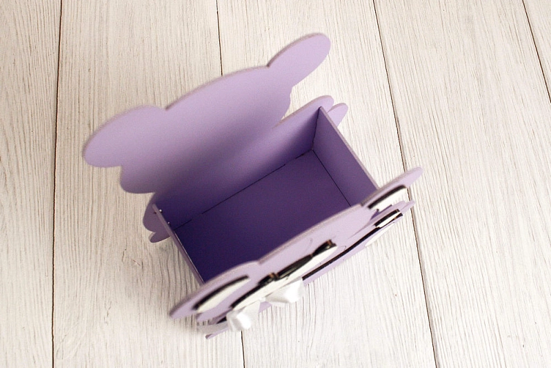 ПУ788-02-4003 Подарочная упаковка "Мишутка" большой (17*9*21) МДФ, окрашен., оформл., Сиреневый пастель-белый, 1 шт.