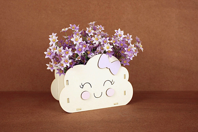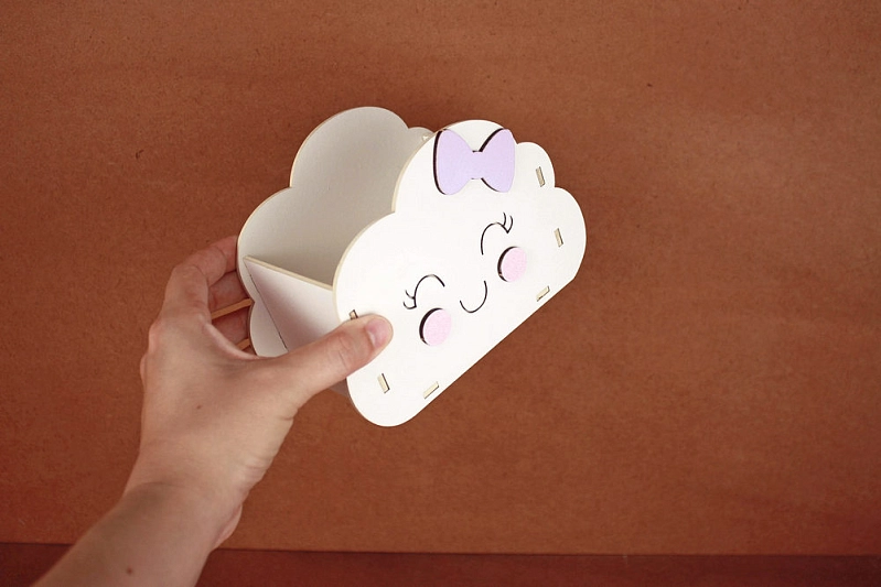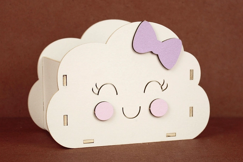 ПУ755-02-0340 Подарочная упаковка "Облачко" (16,5*8,5*11,5) МДФ 3мм, окрашен., оформл., Белый-сиреневый пастель, 1 шт.